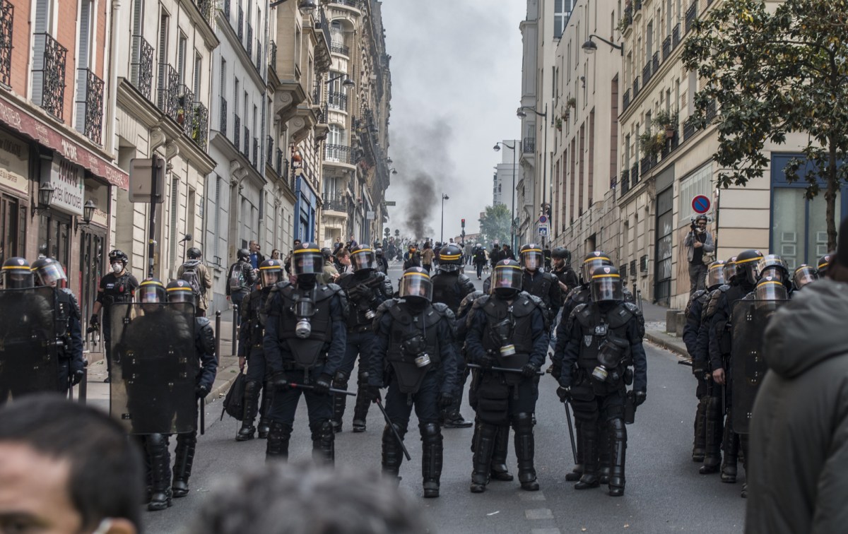 Une fois ayant réussi à intégrer le cortège en suivant une brigade de police discrètement, j’arrive sur une avenue noire de monde (40 000 personnes selon certaines sources, entre syndicats, « gilets jaunes », « blackblocs » et citoyens sans étiquette). Les gaz lacrymogènes ont déjà commencé, malgré le fait que le cortège ne soit pas encore parti. Des affrontements s’ensuivent au milieu du cortège, notamment devant le restaurant La Coupole.